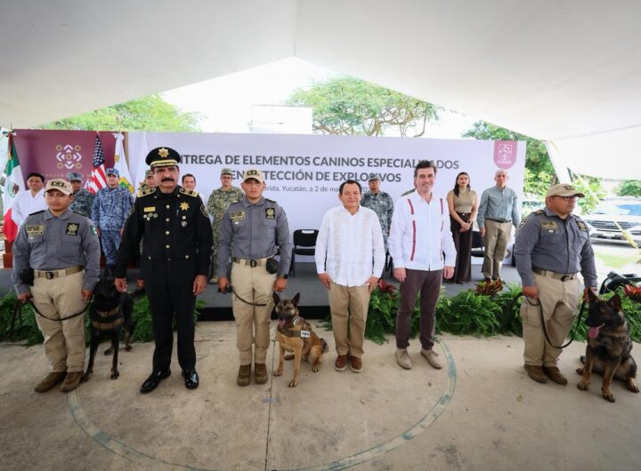 El Gobernador Joaquín Díaz Mena encabezó la incorporación de tres nuevos binomios caninos a la Secretaría de...