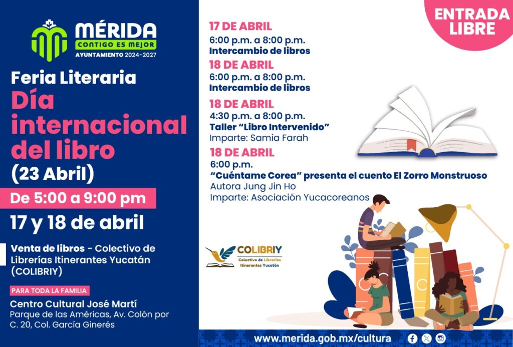 Las actividades se realizan en conjunto con el Colectivo de Librerías Itinerantes Yucatán (COLIBRIY). A estas actividades se suma el concierto “¿Y cómo nace la inspiración?” con Ale Destiny, cuyas letras recorren viajes, arte, naturaleza, amor y nostalgia. La cantautora estará acompañada por Andrea Quijano y Carolina Menéndez en el piano y las percusiones, respectivamente, el sábado 18, a las 8 de la noche.